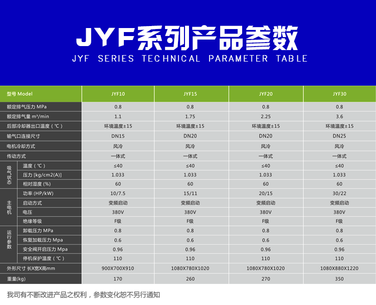 Product name:JYF20 Screw Air Compressor