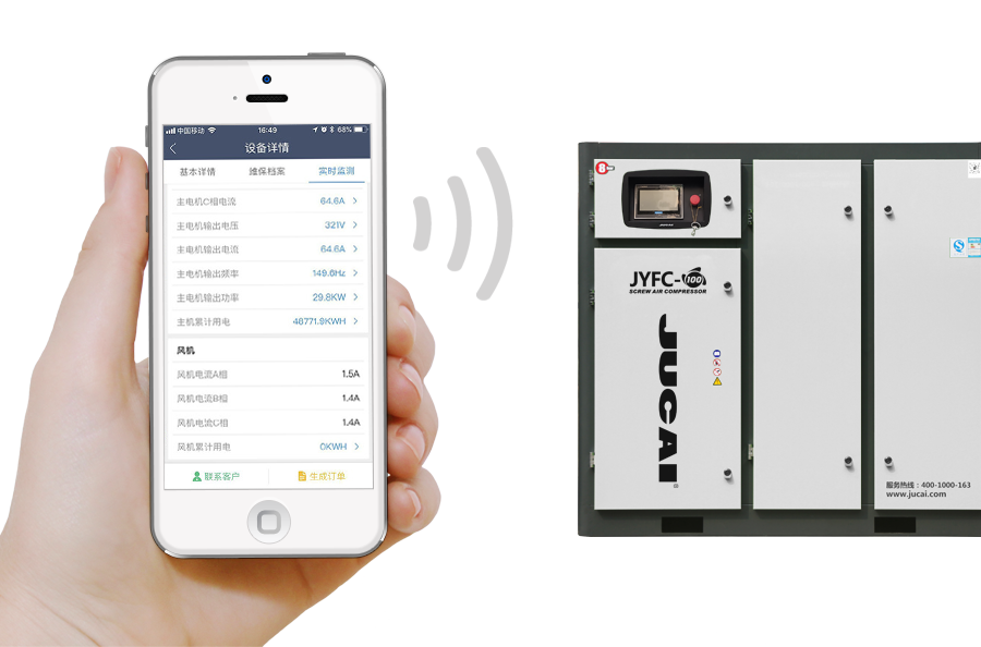 通過物聯網技術對空壓機設備進行全生命周期管理,遠程檢測,遠程管理,手機預警,數據采集等。