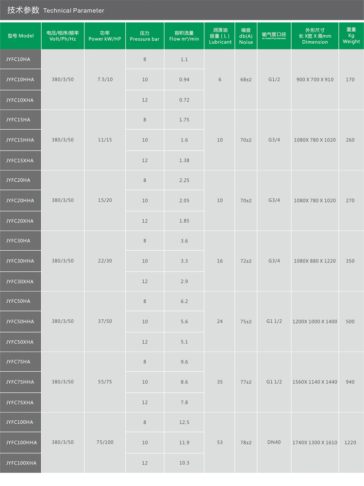 產品名稱:75kW單級永磁變頻螺桿空壓機JYFC100