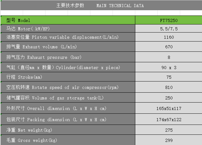 標(biāo)題:FT75250 新型節(jié)能環(huán)保活塞空壓機(jī) 5.5kW/7.5HP