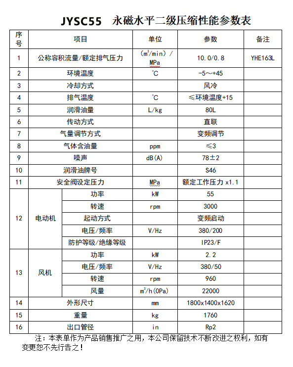 產(chǎn)品名稱:55kW 水平雙級(jí)直連永磁變頻空壓機(jī) JYSC55