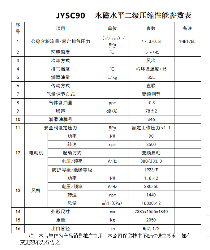 產(chǎn)品名稱:90kW 水平雙級直連永磁變頻空壓機(jī) JYSC90